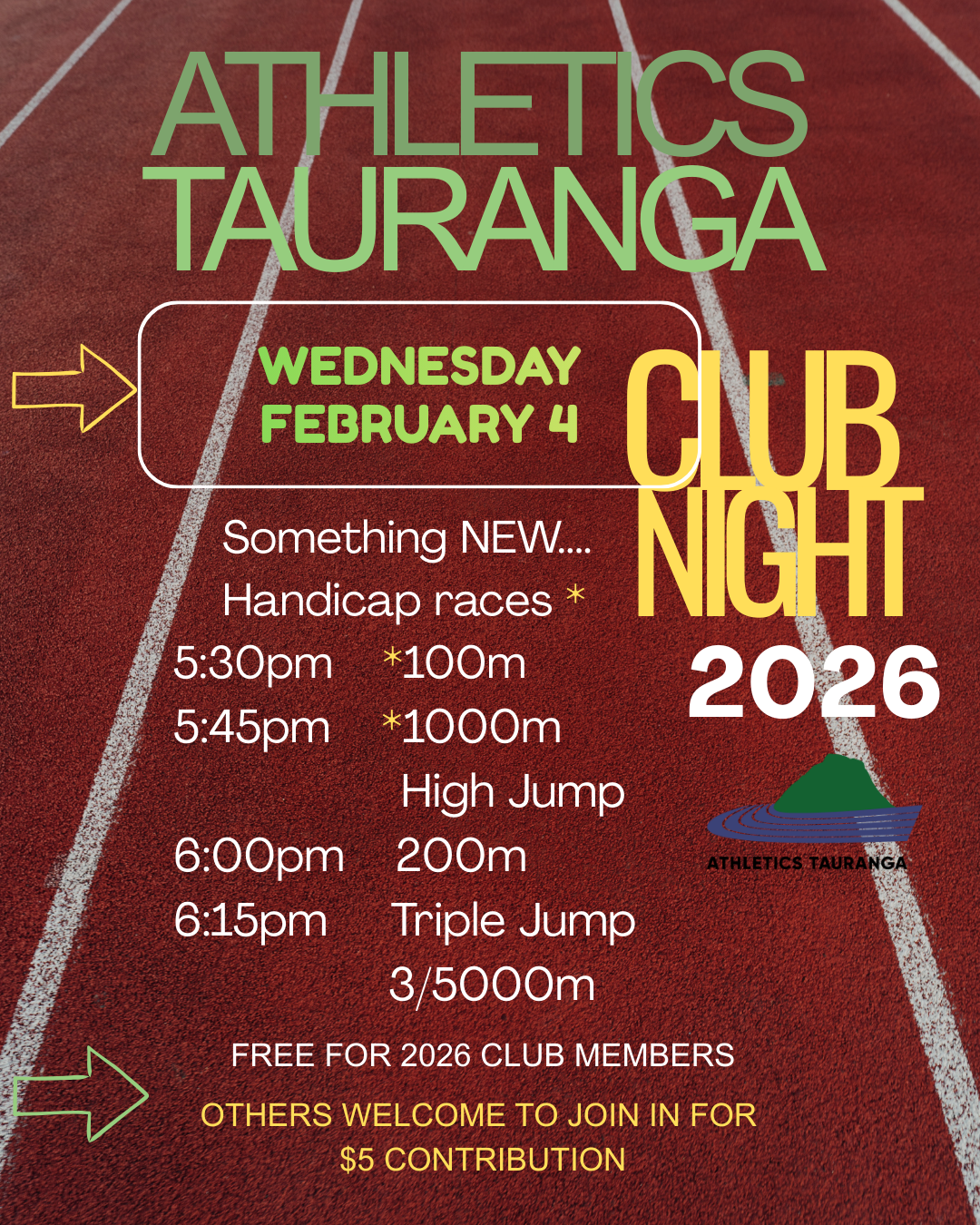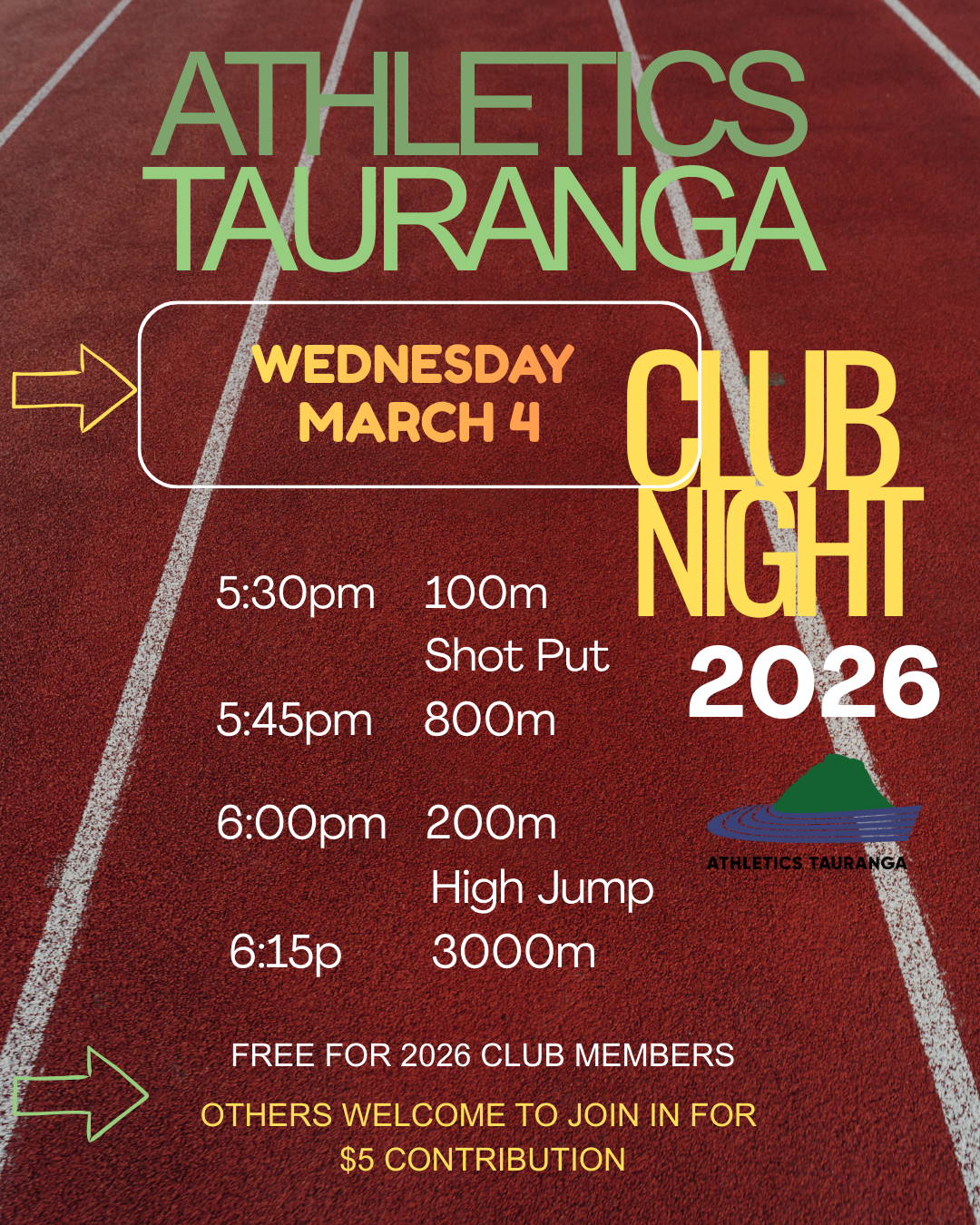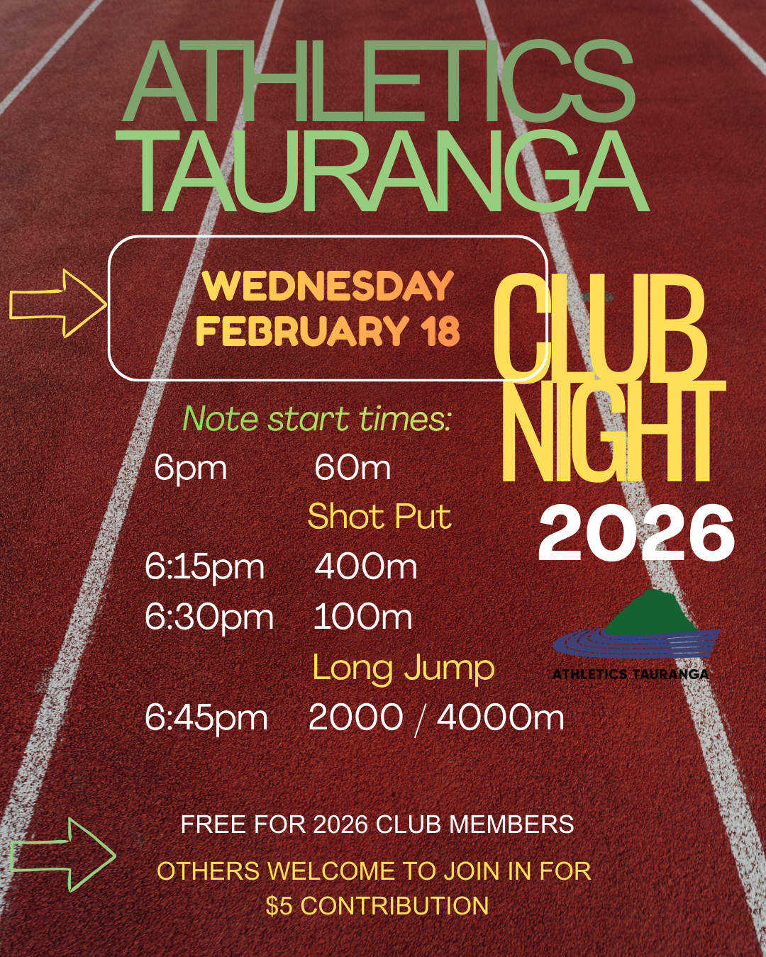 Athletics Tauranga is a club committed to providing the opportunity for people of all ages and abilities that can enjoy cross-country, road running and track and field at a level that suits them.​​​​​​​​​​​​​​​​​​​​​